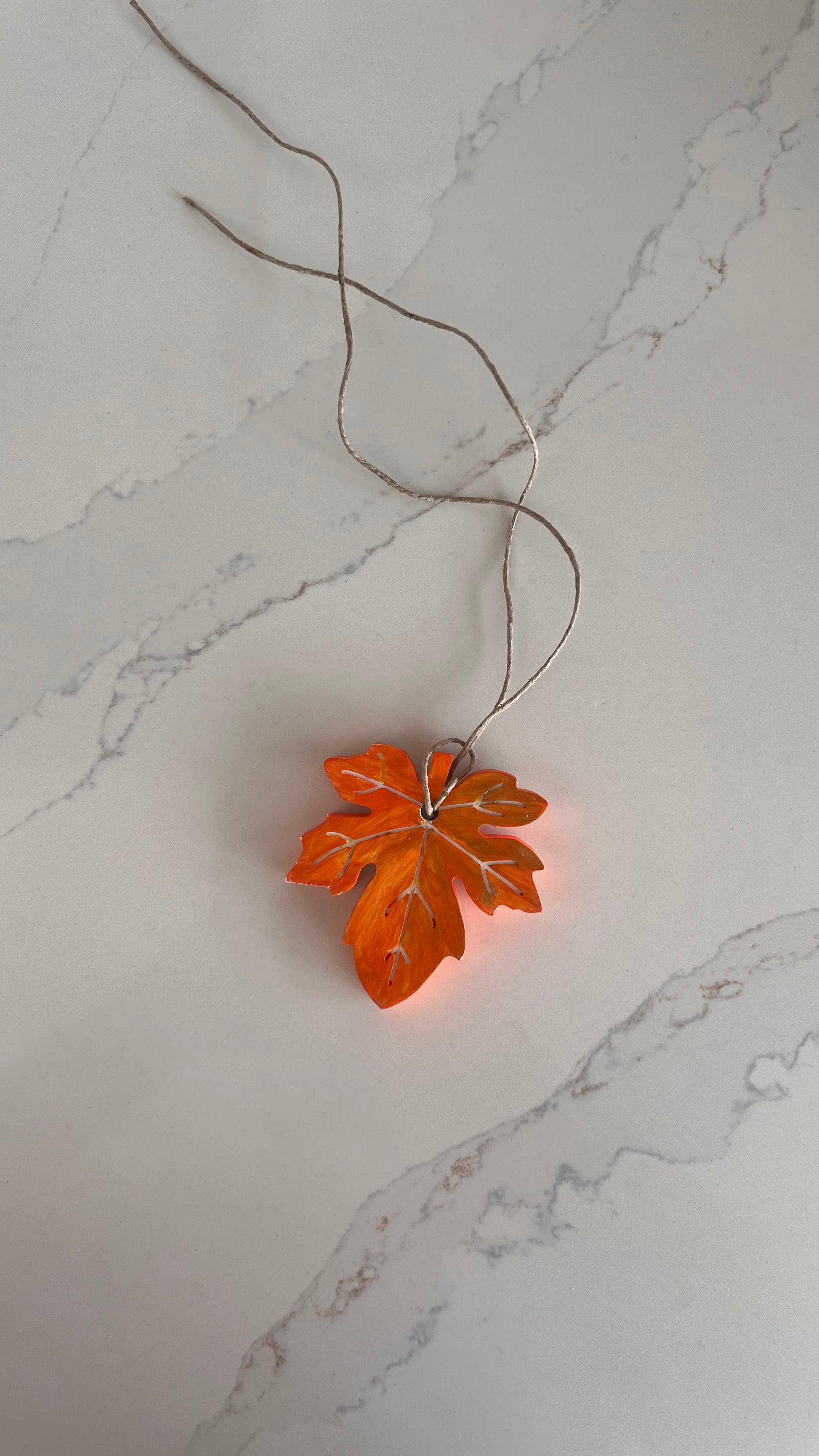 Esta peça não é apenas um ambientador; é também uma charmosa decoração. O design em folha de bordo, com os seus vibrantes tons de laranja e veios detalhados, celebra a estética do Outono.
