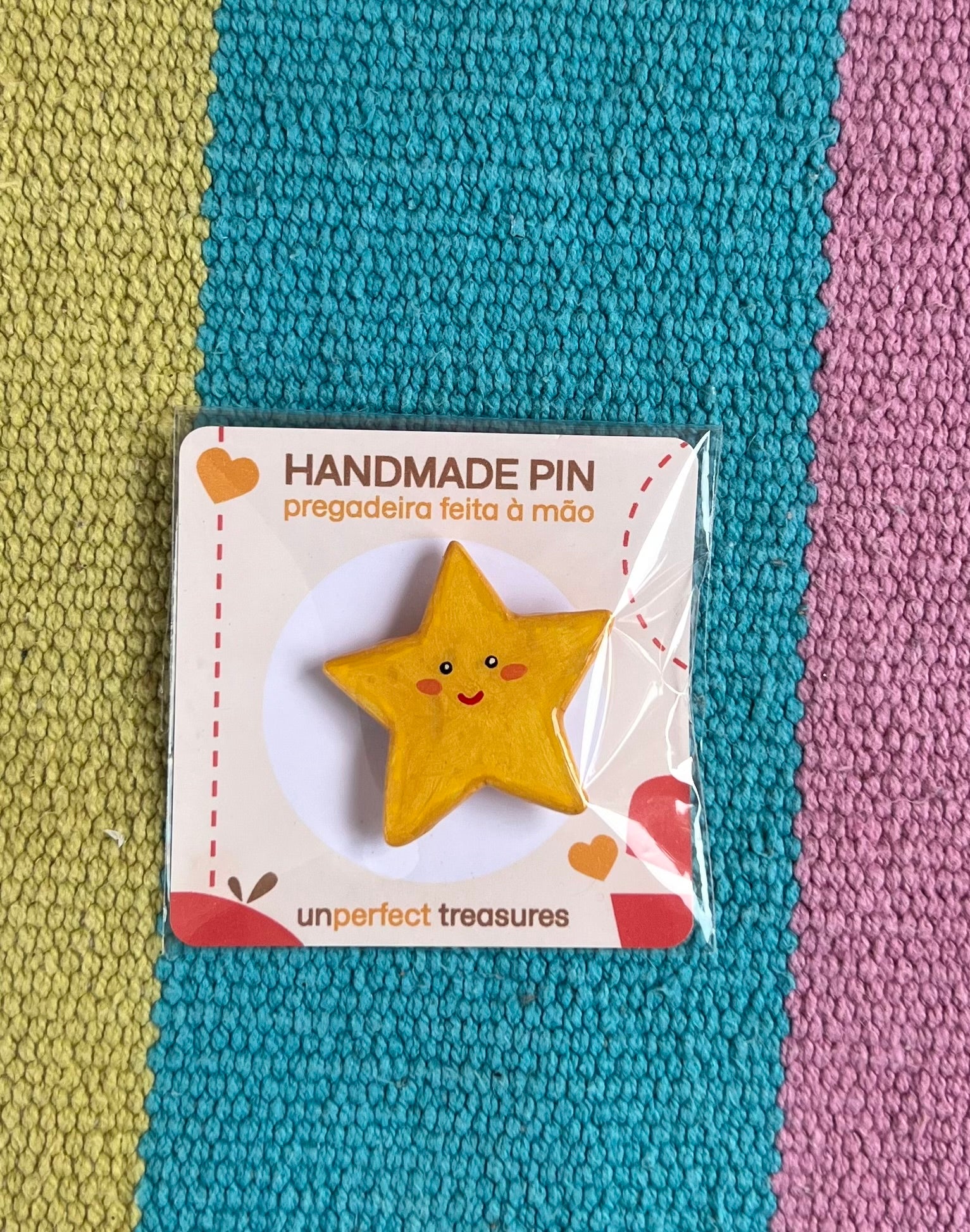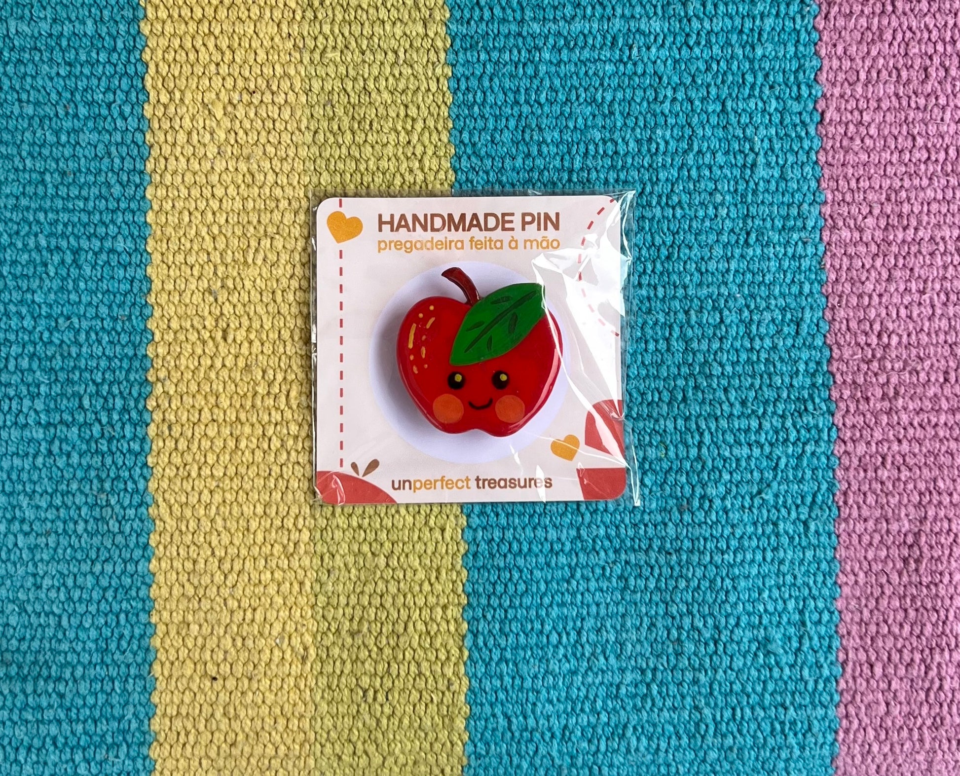 Feito com pasta de modelar que seca ao ar, tintas acrílicas e resina UV para uma acabamento brilhante e duradouro. Ideal para por no casaco ou mochila.